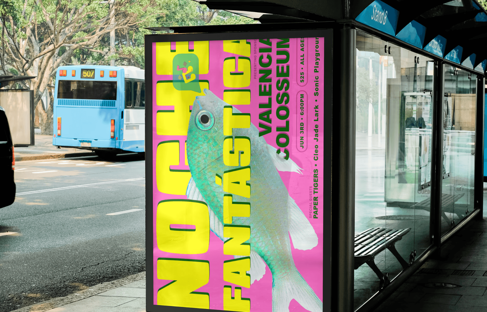 Create a poster or album cover for a fictional event or artist.